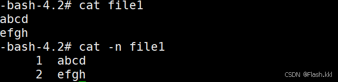默认把文件内容向显示器打印;cat -n 打印内容时,显示行号;