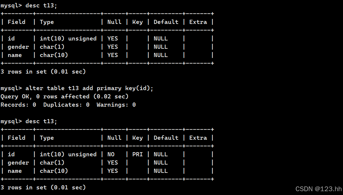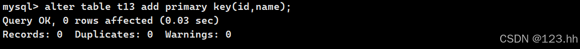 还能再建表之后再设立主键:alter table table_name add primary key(字段列表)