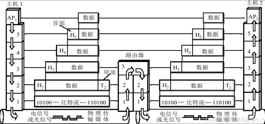 在协议的控制下,两个对等实体间的通信使得本层能够向上一次提供服务。要实现本层协议,还需要使用下面一层所提供的服务;