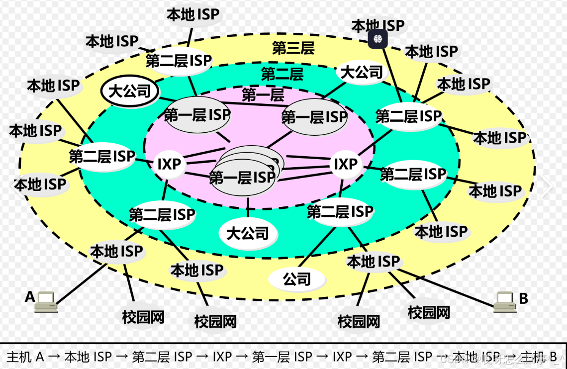 这种结构的互联网就是为了让连接到互联网上的用户可以相互通信,地区网只能保证本地区的校园网和企业网的用户相互通信,而主干网可以使得不同地区的用户相互通信