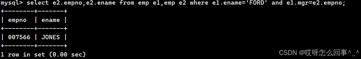 1、显示员工FORD的上级领导的编号和姓名(mgr是员工领导的编号--empno)