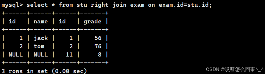 如果联合查询,右侧的表完全显示我们就说是右外连接。