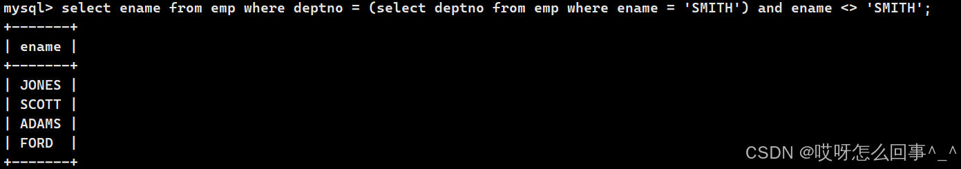 假想有两张emp表,通过第一张表的姓名为FORD的员工找到mgr,再去第二张表中找到与这个mgr相同的empno所在的元组;