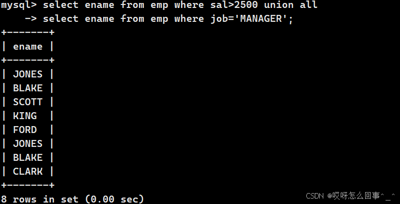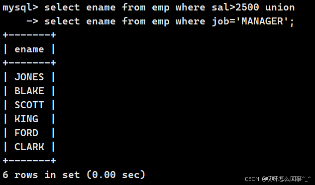 在实际应用中,为了合并多个select的执行结果,可以使用集合操作符 union,union all