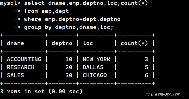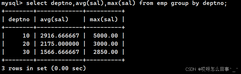 要在显示时带上deptno但是使用了聚合函数,那么就要将deptno作为分组的依据