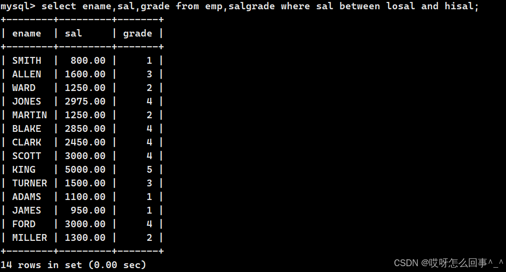 此时没有具体相同的值,也可以用值是否在一个范围来连接两个表