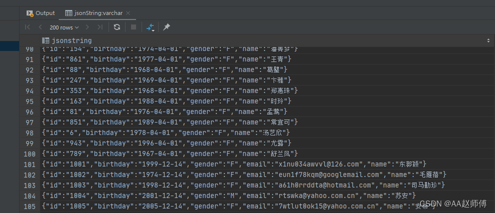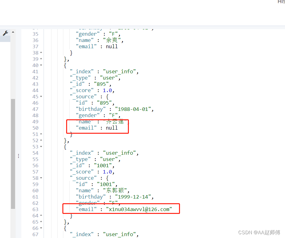 4、准备好数据,数据样例,其中email字段部分内容置为空模拟数据为空效果