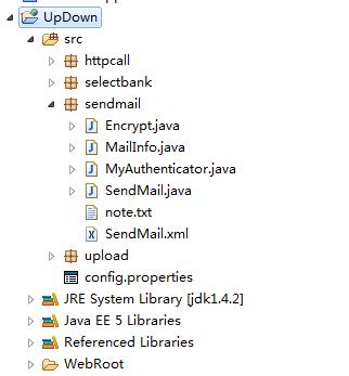 为了方便,还是在之前的UpDown项目下运行的,本次用到的文件只有sendmail包下的文件。