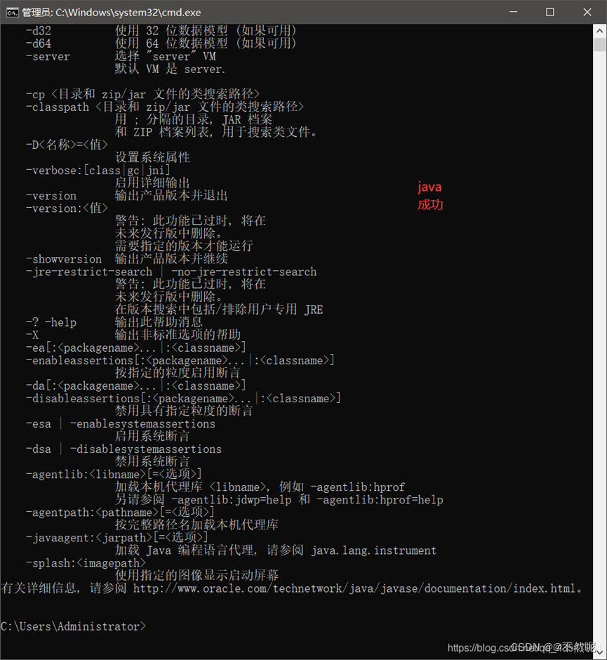 如失败则显示‘不是内部命令也不是外部命令’。如成功,结果如下