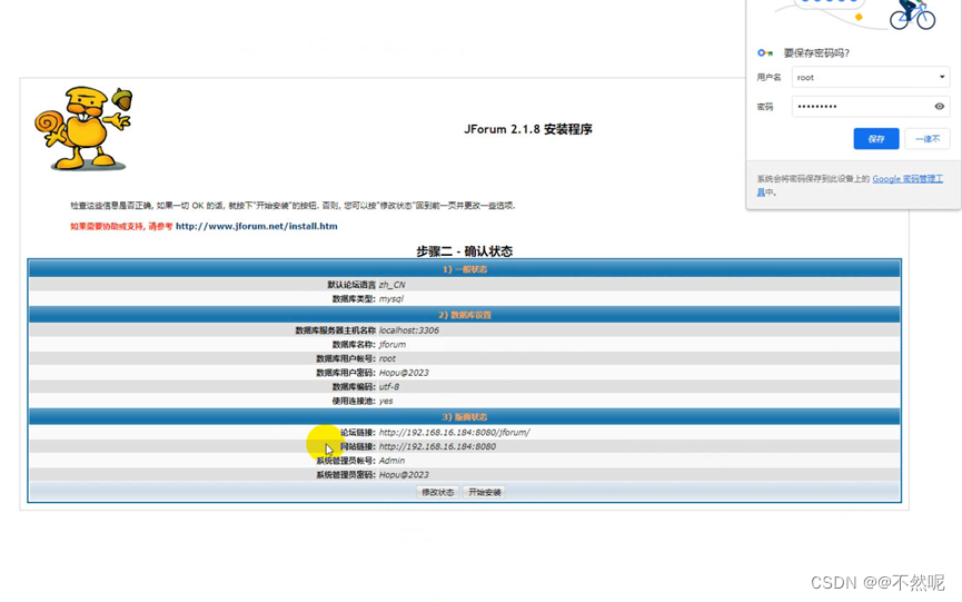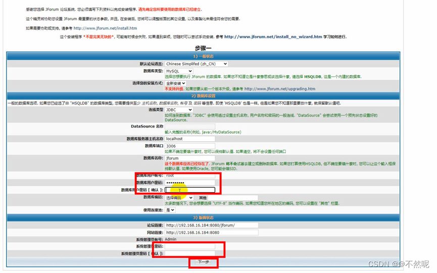 2.浏览器输入localhost:8080/jforum-2.1.8/install.jsp