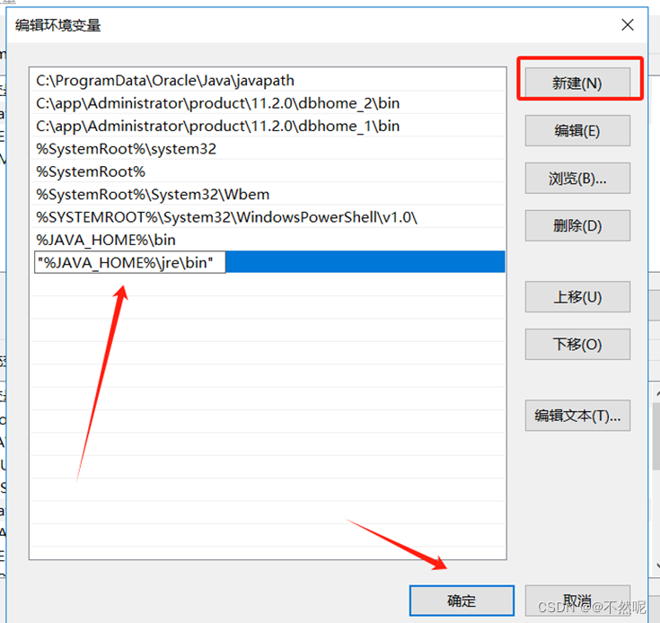 6.1.在新建一个:输入"%JAVA_HOME%\jre\bin" 点击确定