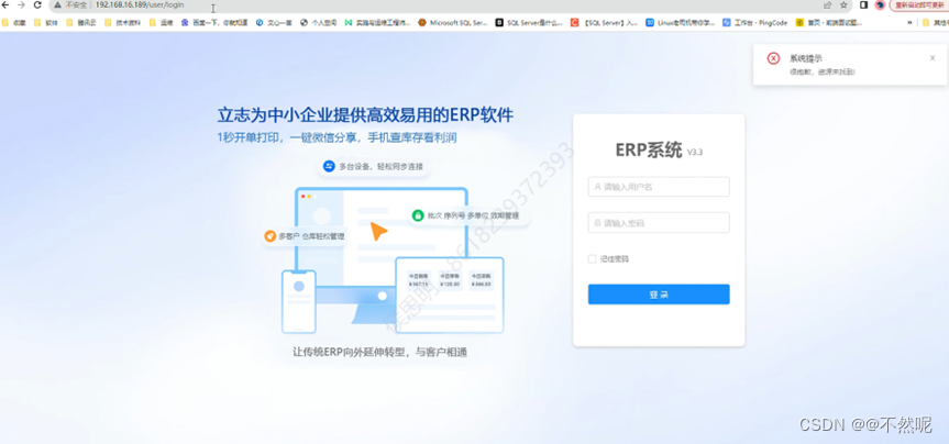 3.1打开自带浏览器输入ip地址尝试打开ERP系统网站