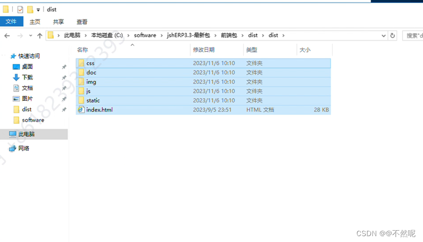 1.1首先将C:\software\jshERP3.3-最新包等1个文件\jshERP3.3-最新包\前端包\dist\dist目录下的这两个文件删除
