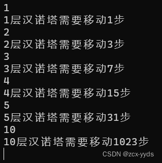printf("%d层汉诺塔需要移动%d步\n", n, f1(n));