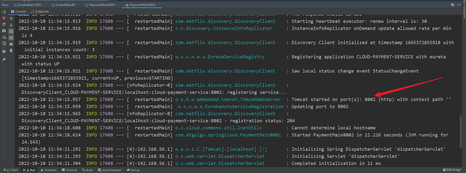 添加模块并成功在8002端口启动,且8001和8002模块代码一致,