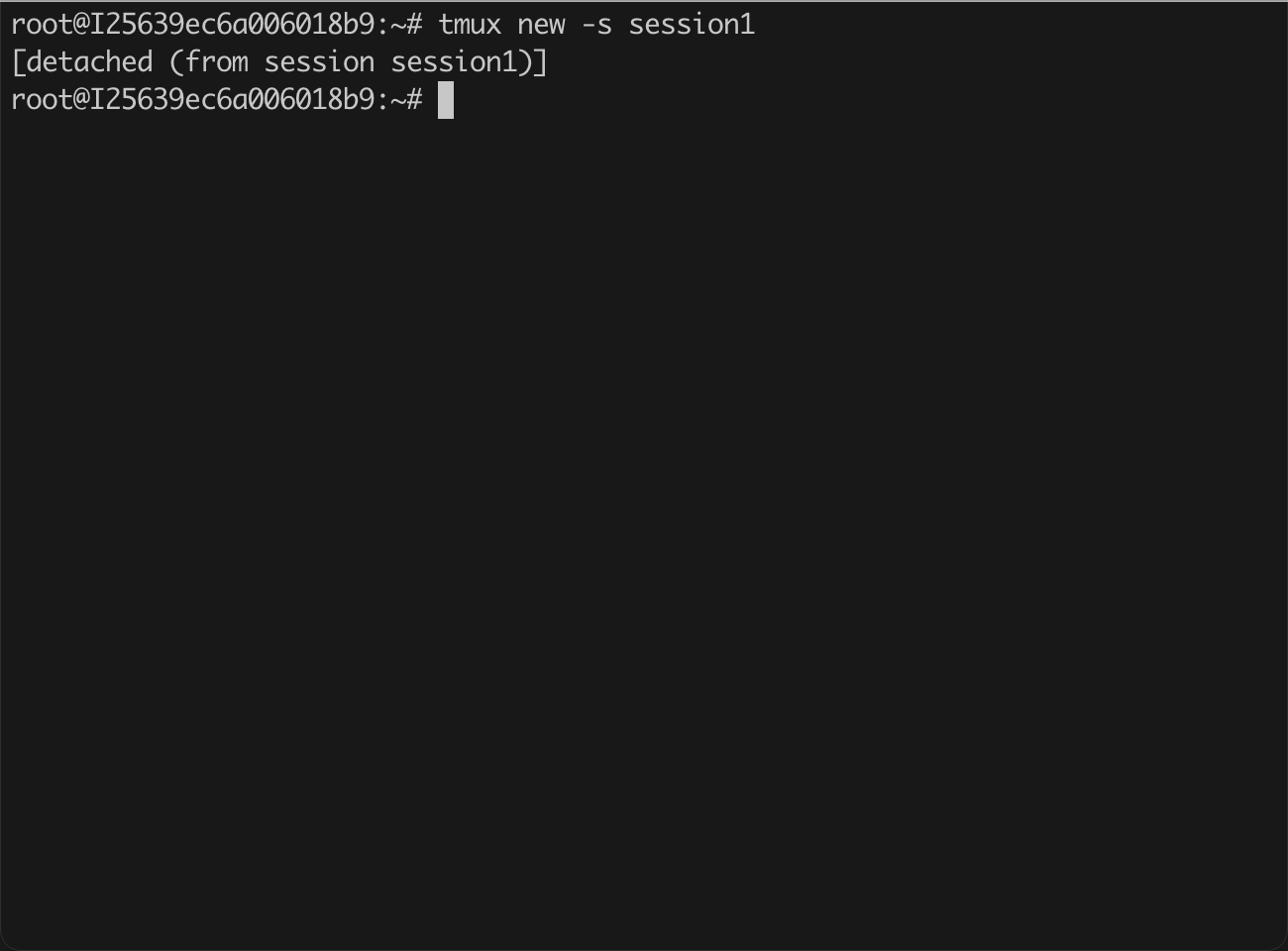 5.需要恢复会话时,使用 tmux a -t <session-name>,重新进入之前的会话中,如进入刚才名称为 session1 的会话: