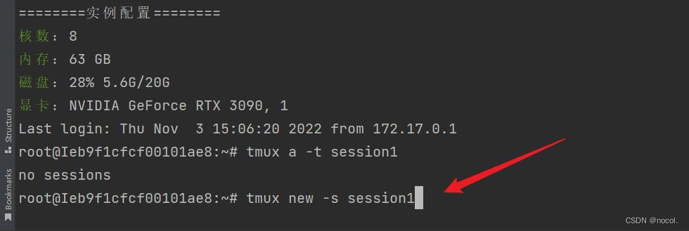 3.执行后进入到新创建的 session1 会话中,在底部会显示当前会话的信息。