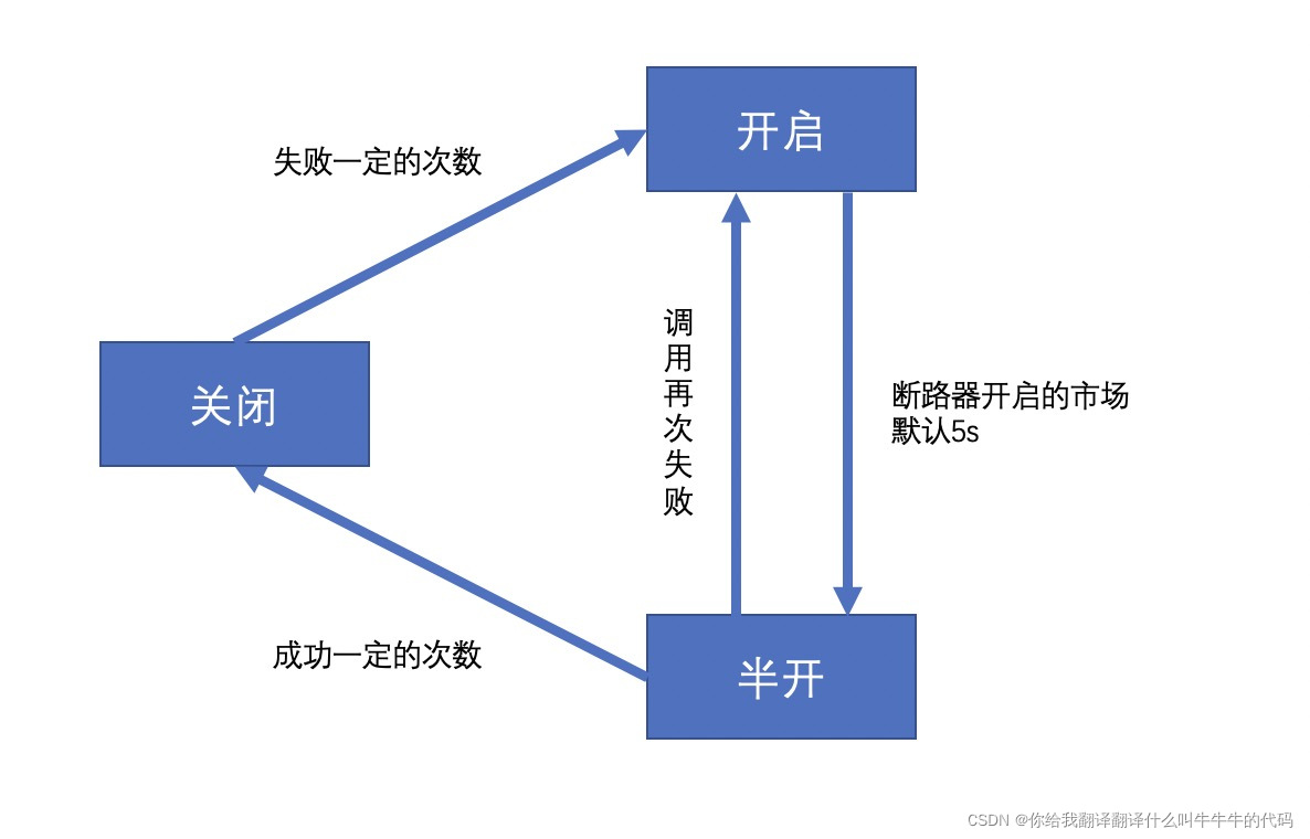 他的工作机制就是当某段时间内某个方法次数过多,那么断路器就打开,并且拒绝了所有的请求,这个断路器会开启一定的时常进入半开启状态,目的就是校验一下这个方法恢复了没,如果还是出错那么继续进入开启状态。