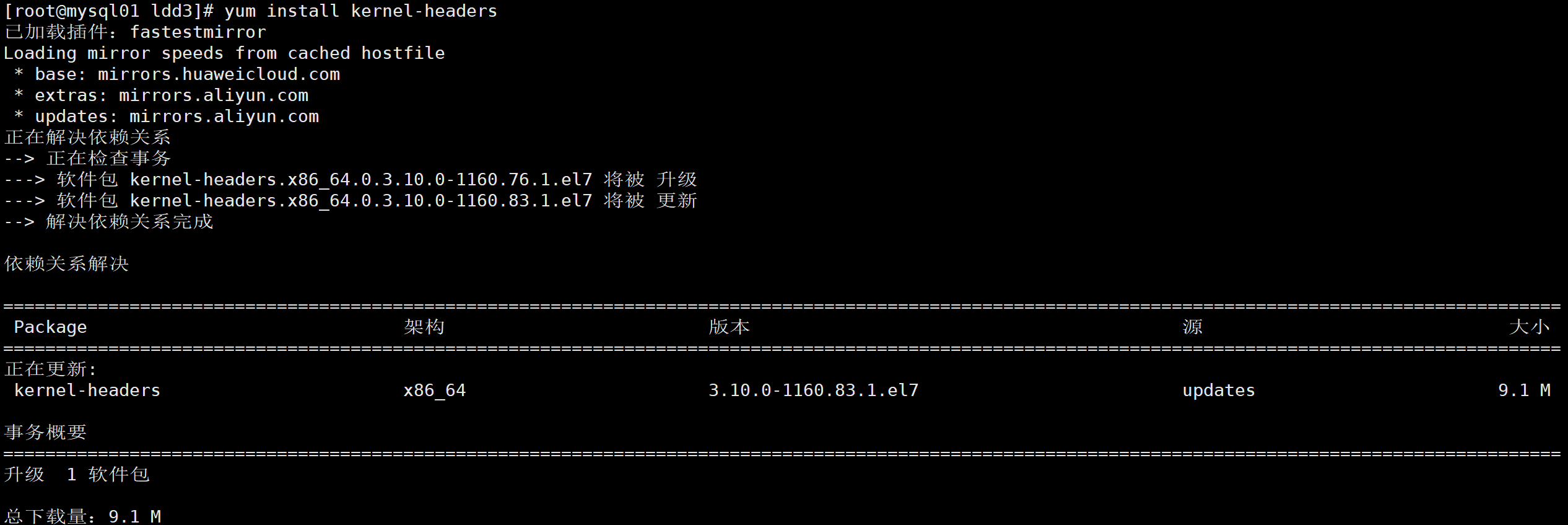 可以看出,即将安装的头文件版本3.10.0-1160.83.1.el7比当前系统版本3.10.0-693.el7要新。(这样子即使安装&编译成功,.ko文件也不能加载进内核,会报错insmod: ERROR: could not insert module hello_world.ko: Unknown symbol in module,我就是这样踩了第一个坑)。