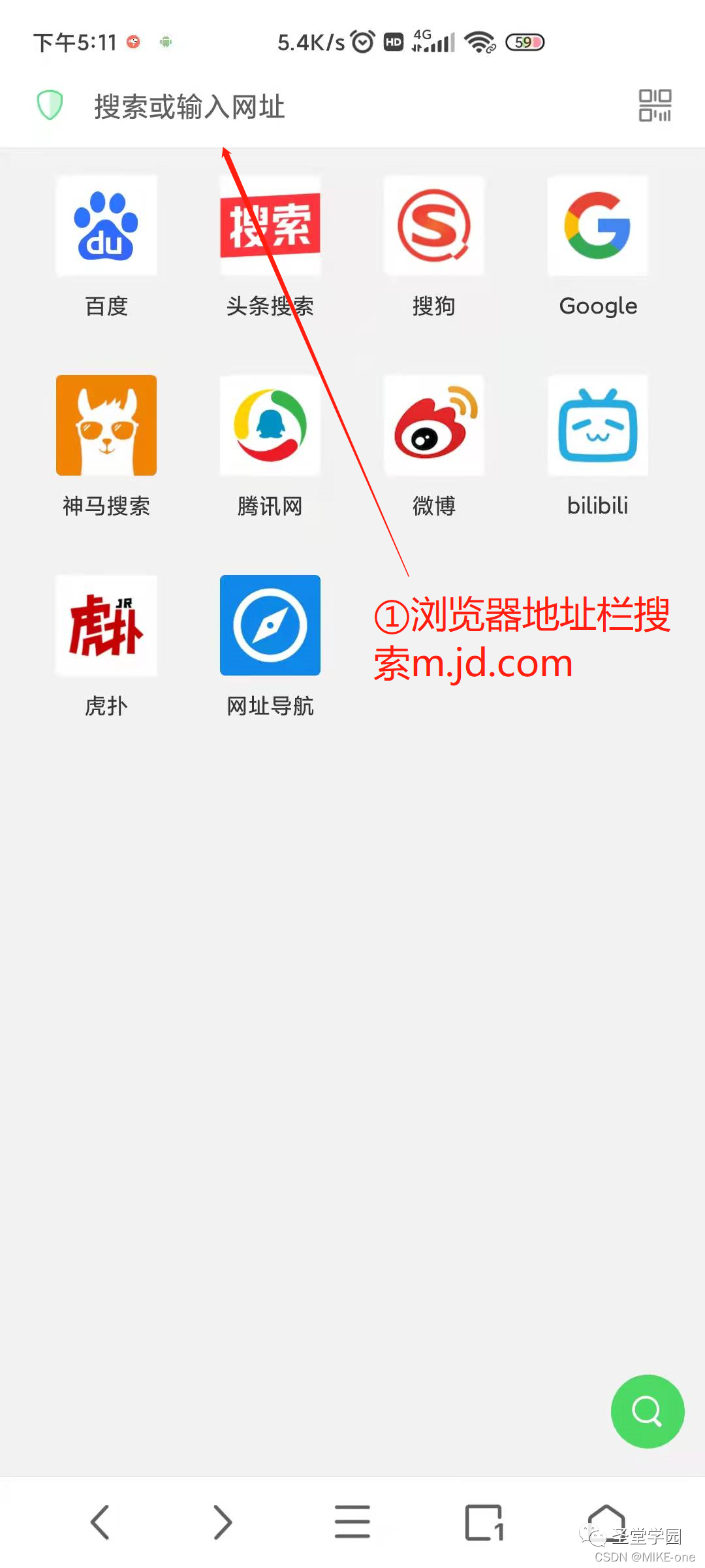第二步,浏览器登录网址:m.jd.com