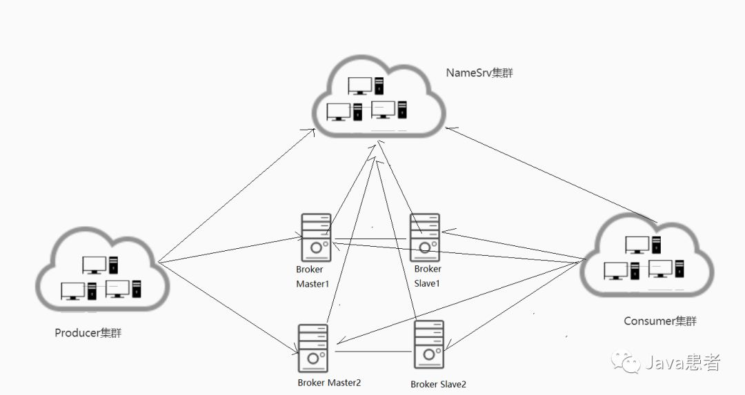 Producer: 与Namesrv集群中的一个节点建立长连接,定期从Namesrv取Topic路由信息,并向提供Topic服务的Master建立长连接,且定时向Master发送心跳。