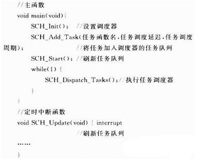 下面的编程结构埘“时间触发编程模式”进行了改进,使之在不提高硬件成本的情况下,使编程人员更直观地定义任务,减少任务特性对系统程序结构的冲击,使程序结构简单、明了并提高系统的实时响应速度。