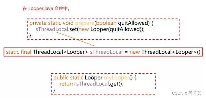 Looper的prepare方法先创建Looper,并使用ThreadLocal存储即与当前的线程进行关联,然后loop方法开启消息机制的时候,使用ThreadLocal方法获取到当前线程的Looper方法。