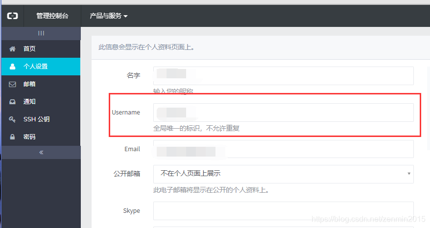 阿里云gitlib账号在 code首页 - 设置 - 个人设置