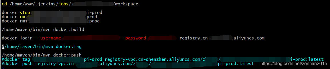 注释部分是使用docker命令方式 我使用的是maven插件方式 一样的道理