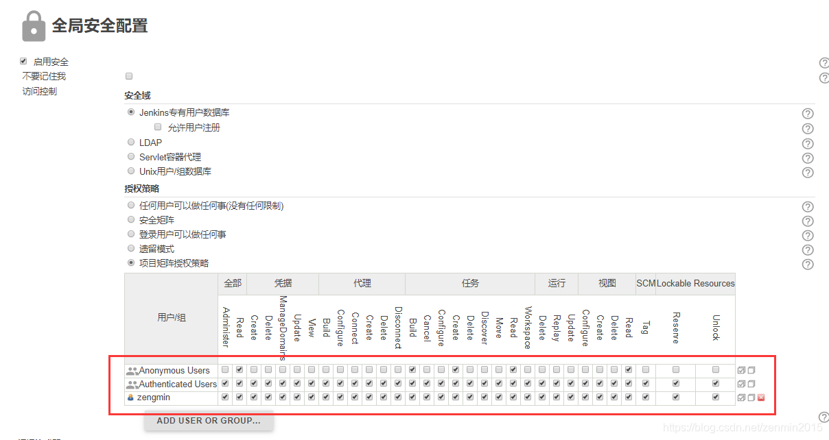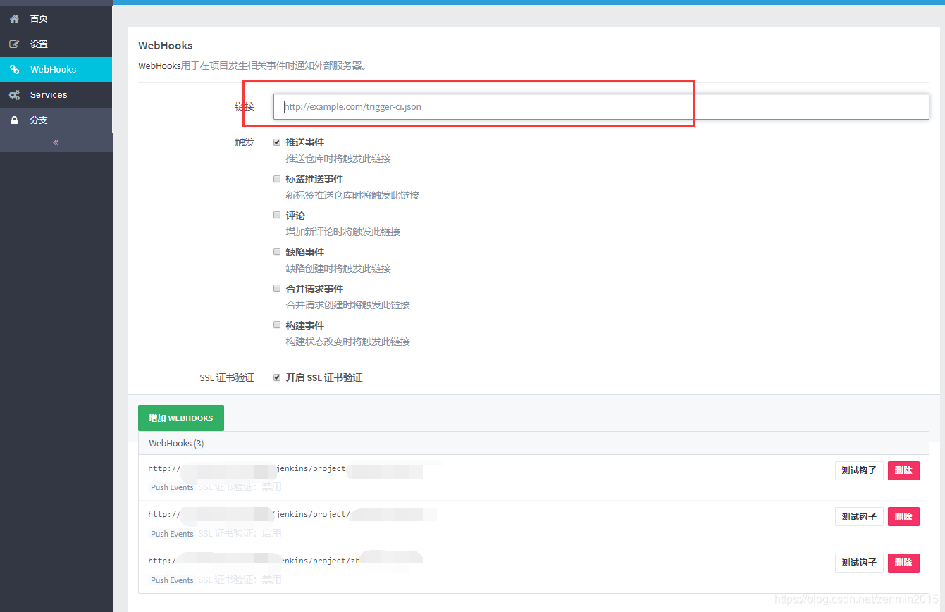 增加wehoooks后 可以点一下测试 如果返回403则表示 Jenkins不允许匿名访问 这时候我们要在Jenkins配置一下权限: