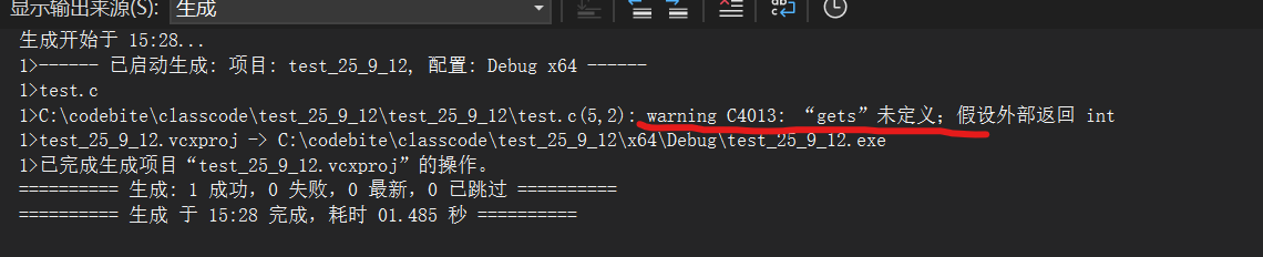 鉴于其严重安全性问题,gets()函数已在 C11 标准中被正式移除。像 Visual Studio 2022 这样的现代编译器通常默认遵循更严格的安全标准,因此默认不再支持 gets()函数。