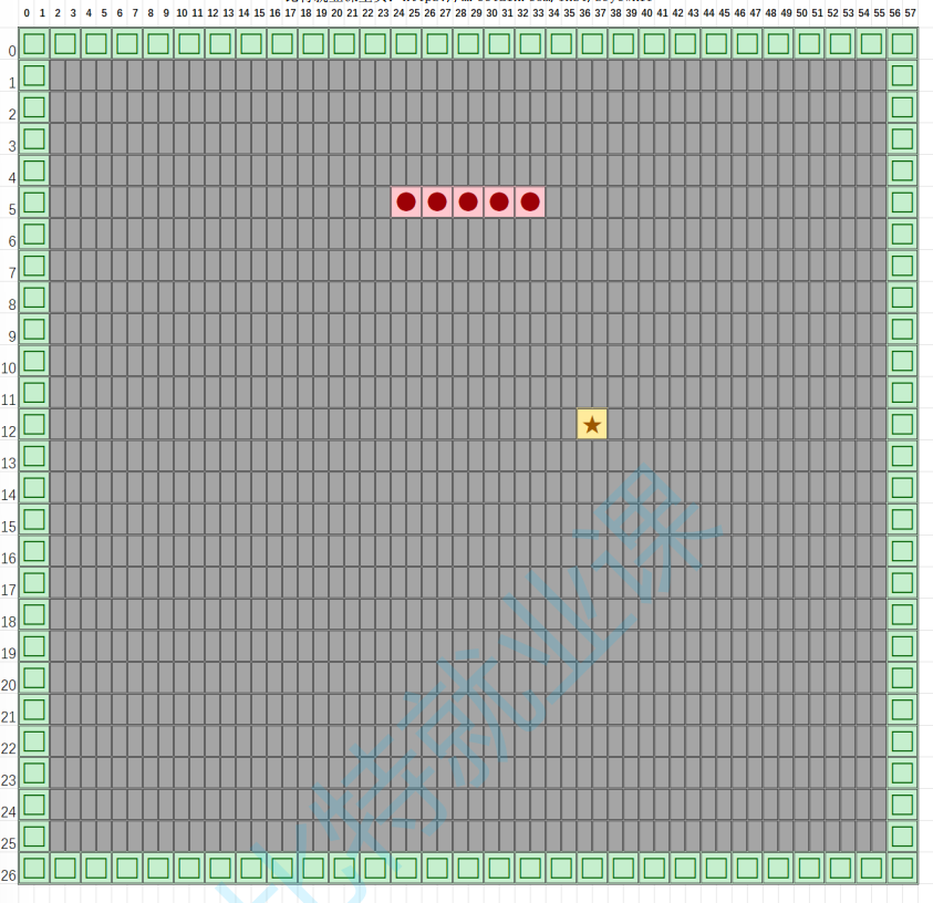 我们假设实现⼀个棋盘27⾏,58列的棋盘(⾏和列可以根据⾃⼰的情况修改),再围绕地图画出墙,