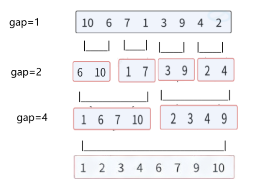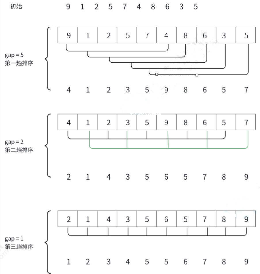 2. 当gap > 1时都是预排序,目的是让数组更接近于有序。当gap == 1时,数组已经接近有序的了,这样就会很快。这样整体而言,可以达到优化的效果。