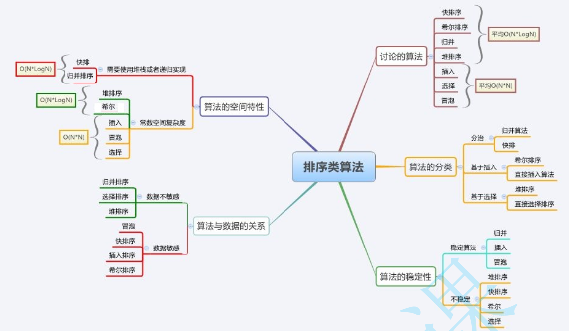 | 冒泡排序 | O(n2) | O(n) | O(n2) | O(1) | 稳定 |
