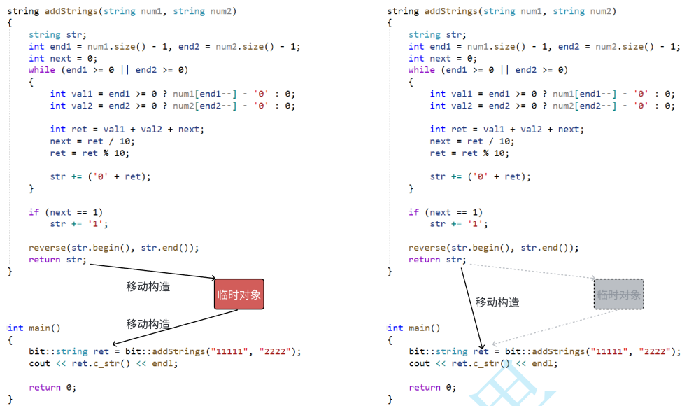 需要注意的是在vs2019的release和vs2022的debug和release,上面代码优化为⾮常恐怖,会直接将str对象的构造,str拷⻉构造临时对象,临时对象拷⻉构造ret对象,合三为⼀,变为直接构造。