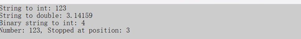 std::cout << "String to int: " << num1 << std::endl; // 123