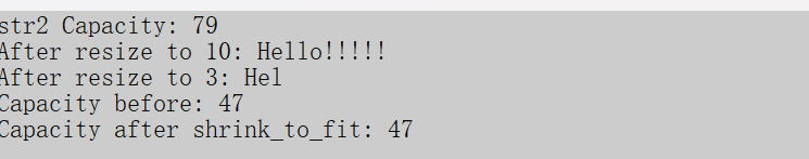 std::cout << "Capacity after shrink_to_fit: " << longStr.capacity() << std::endl;