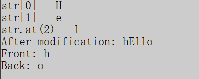 std::cout << "Back: " << str.back() << std::endl; // 'o'