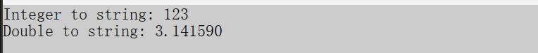 std::cout << "Double to string: " << str2 << std::endl; // "3.141590"