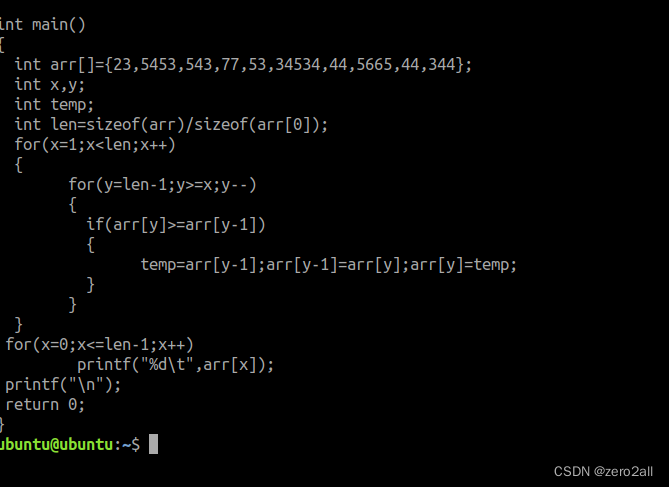 b). 数组的排序