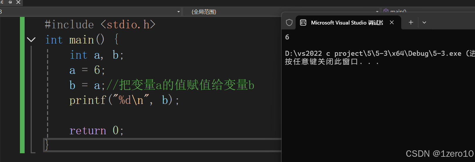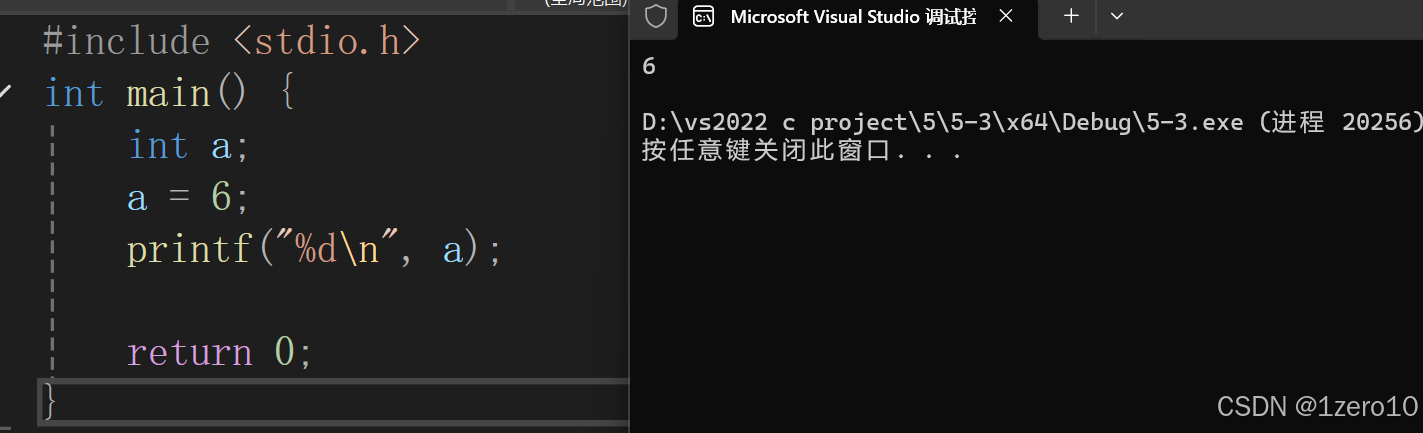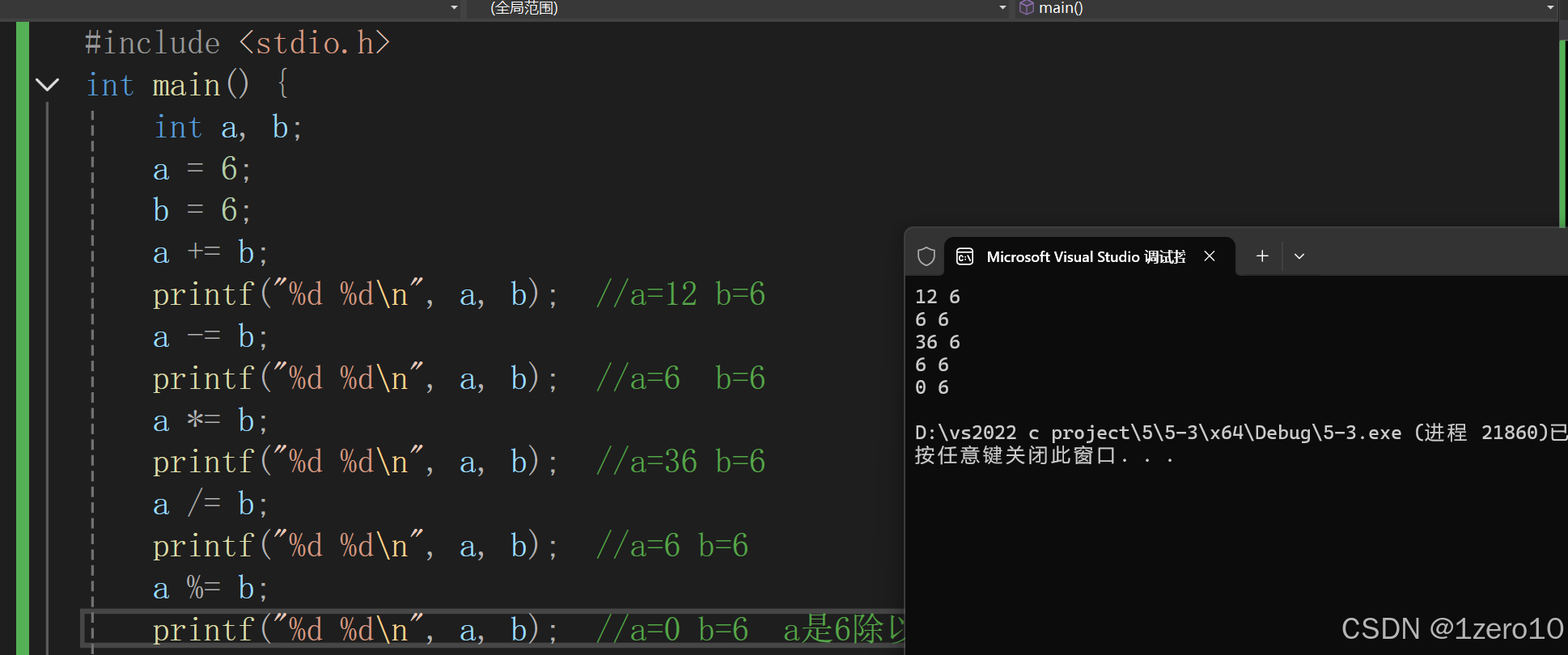 printf("%d %d\n", a, b); //a=0 b=6 a是6除以6后得到的余数 也就是0