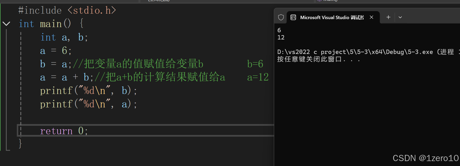 a = a + b; //把a+b的计算结果赋值给a a=12