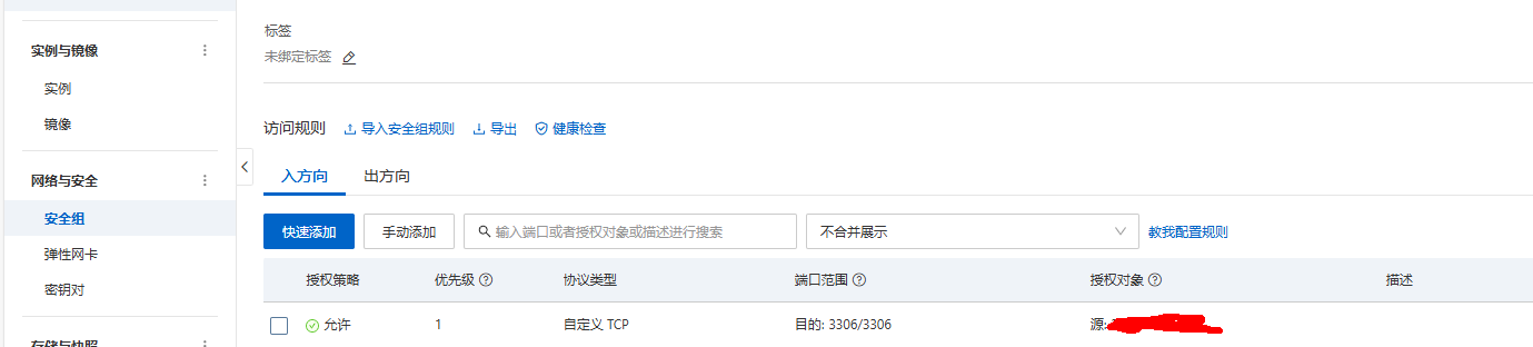 ⚠️ 开放 3306 对公网有安全风险,建议只对固定 IP 开放