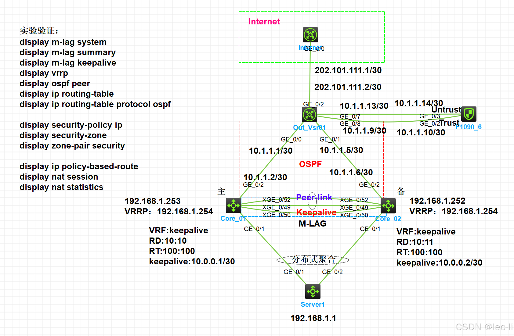 实验下载链接: 【免费】路由交换防火墙综合模拟实验(M-LAG、VRRP、PBR、OSPF)可当毕业设计资源-优快云文库