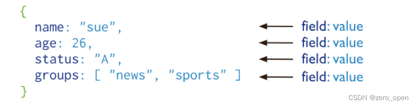 MongoDB文档类似于JSON对象。字段的值可以包括其他文档,数组和文档数组。