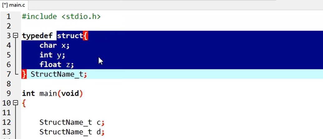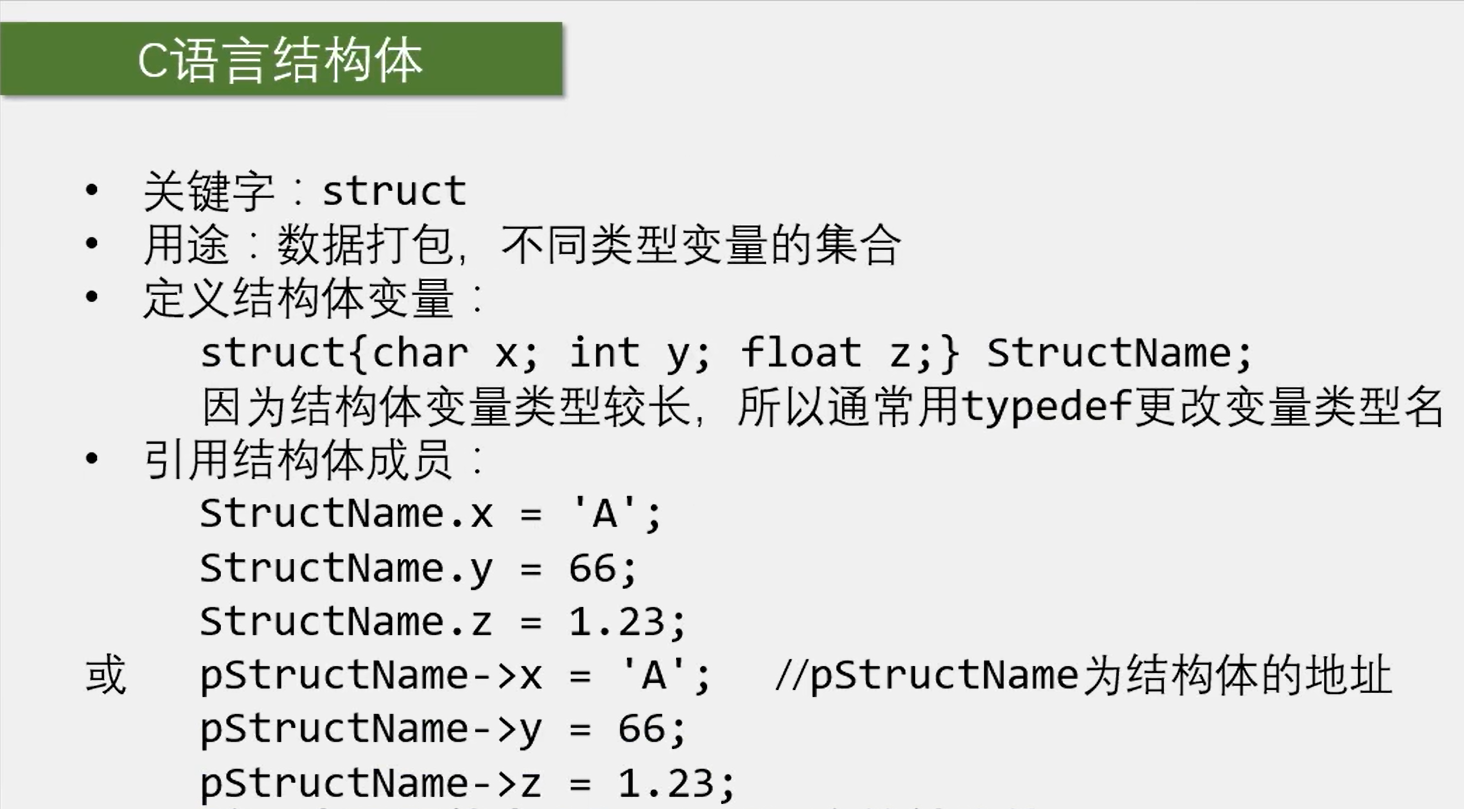 这里的struct包括花括号在内的,是一个结构体的数据类型。然后是typedef,将结构体换了个名字,叫StructName_t。