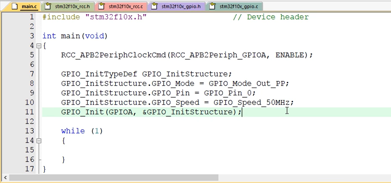 LED.h用来存放这个驱动程序可以对外提供的函数或变量的声明。
