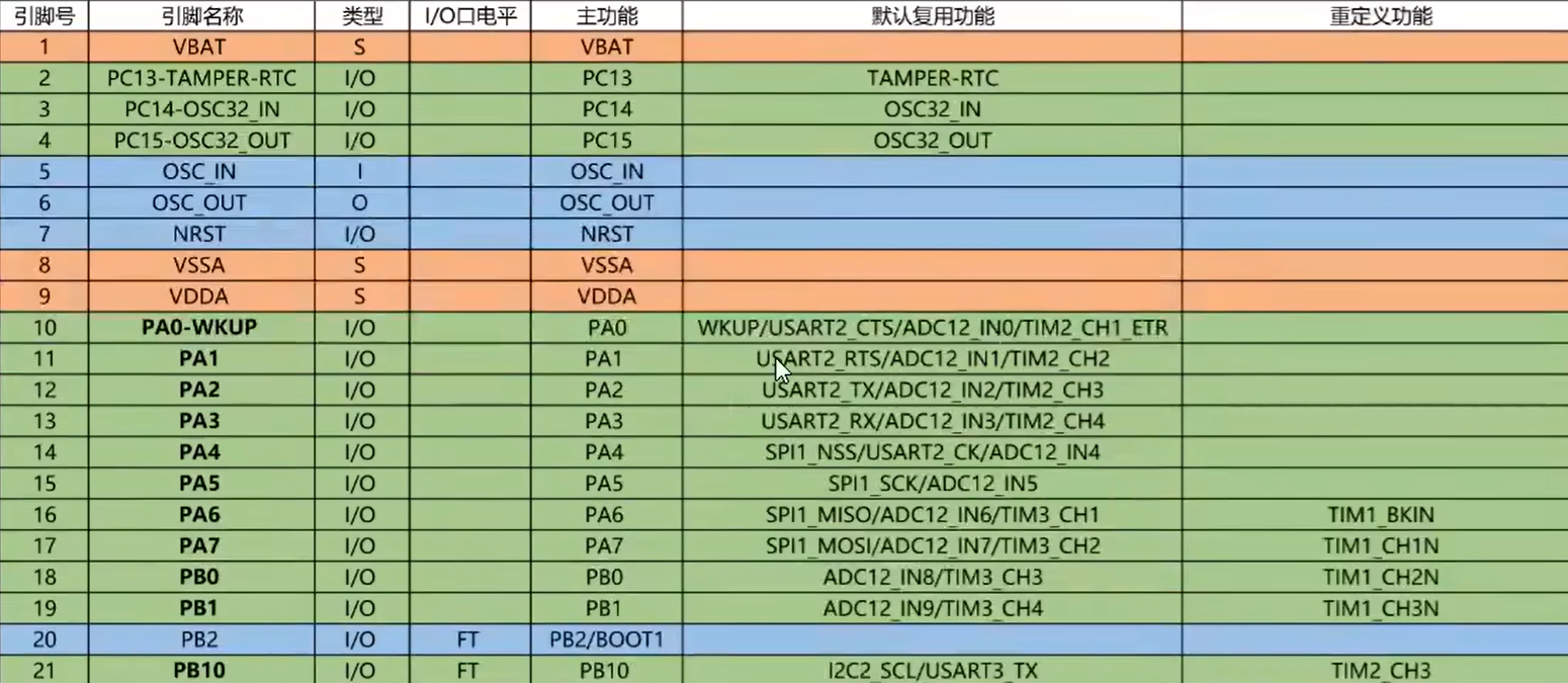 GPIOA的第0号引脚,我们一般把它称作PA0,接着第1号就是PA1,然后PA2,以此类推,一直到PA15。GPIOB也是一样,从PB0,一直到PB15,这样来命名的。
