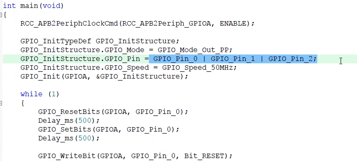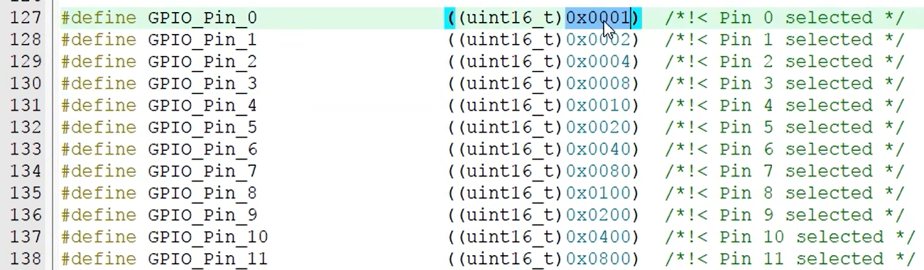 其中GPIO外设的名称是按照GPIOA、GPIOB、GPIOC等等这样来命名的。每个GPIO外设,总共有16的引脚,编号是从0到15。