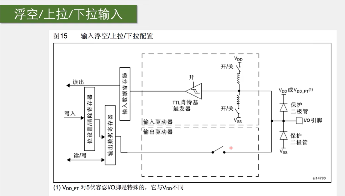 右边两种接法可以允许引脚是浮空输入的模式,因为已经外置了上拉电阻和下拉电阻。